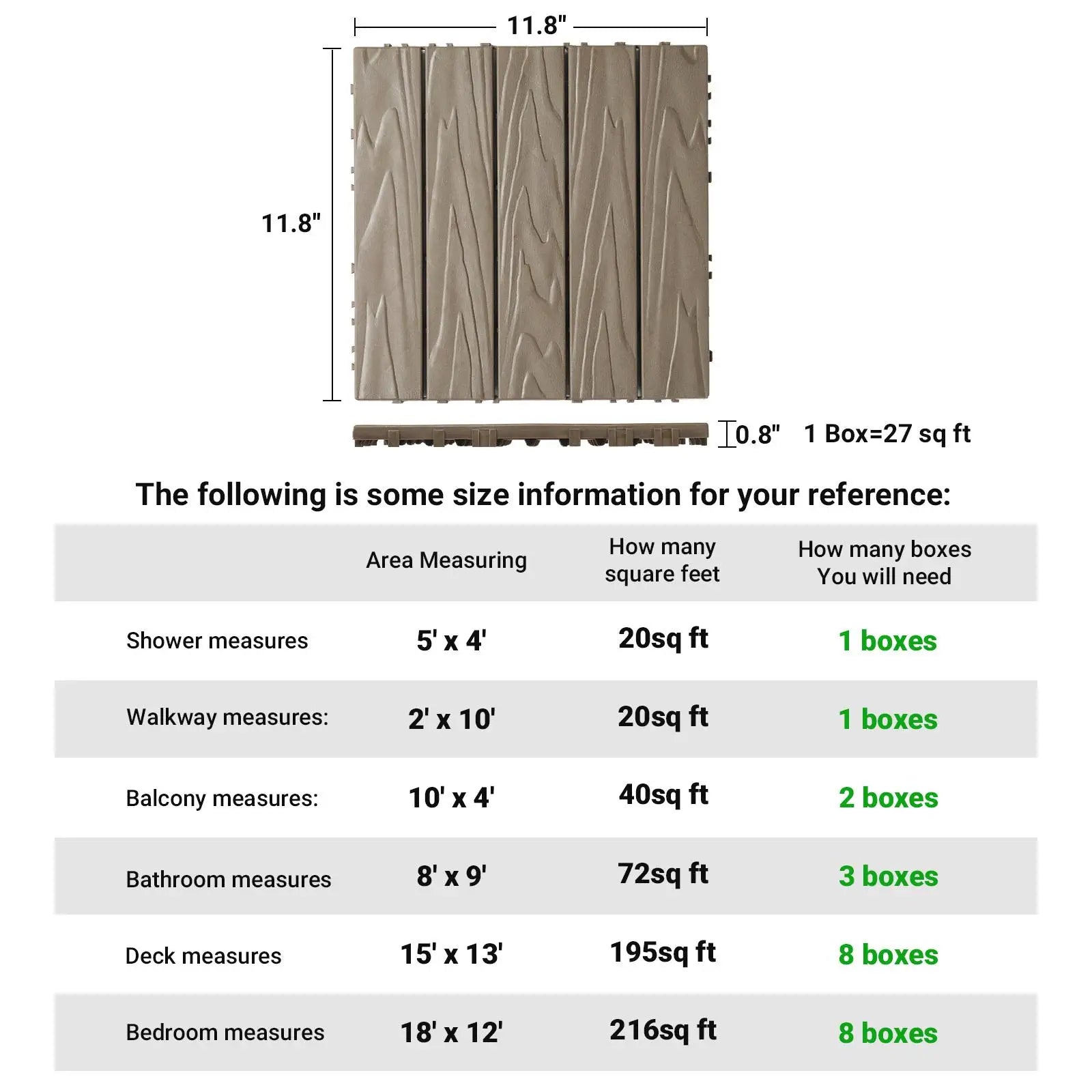27 Pack Plastic Waterproof Interlocking Deck Tiles, 11.8 x 11.8