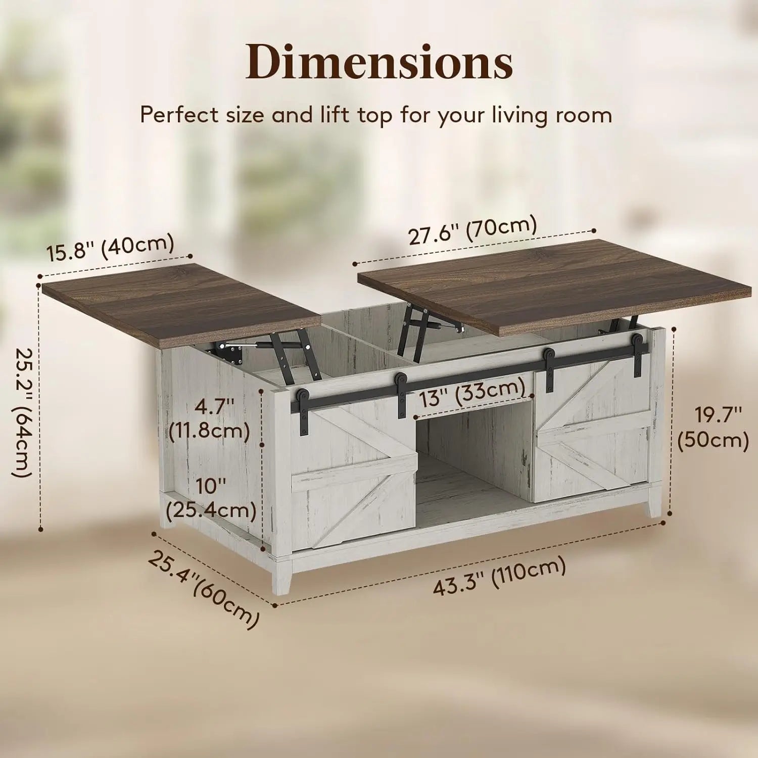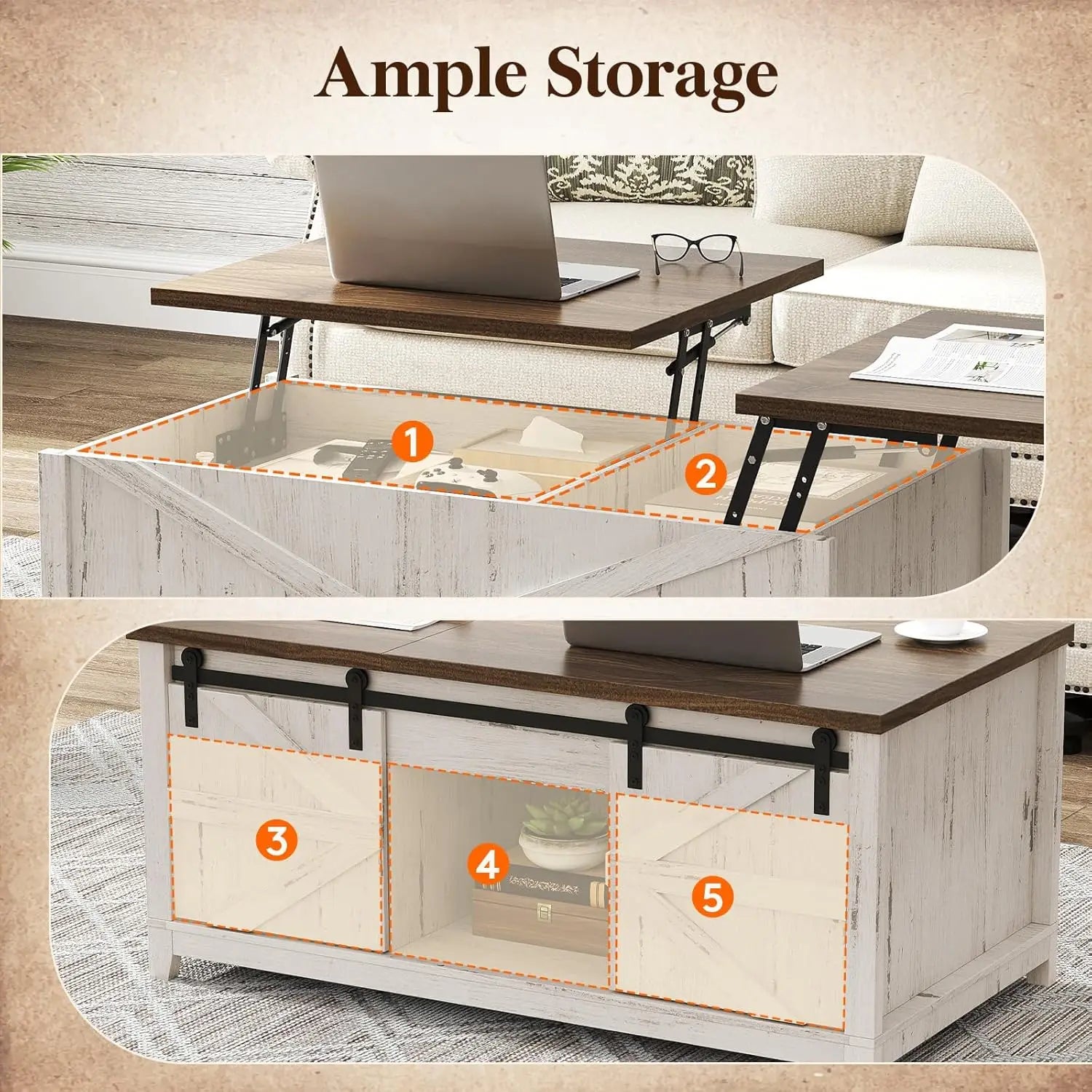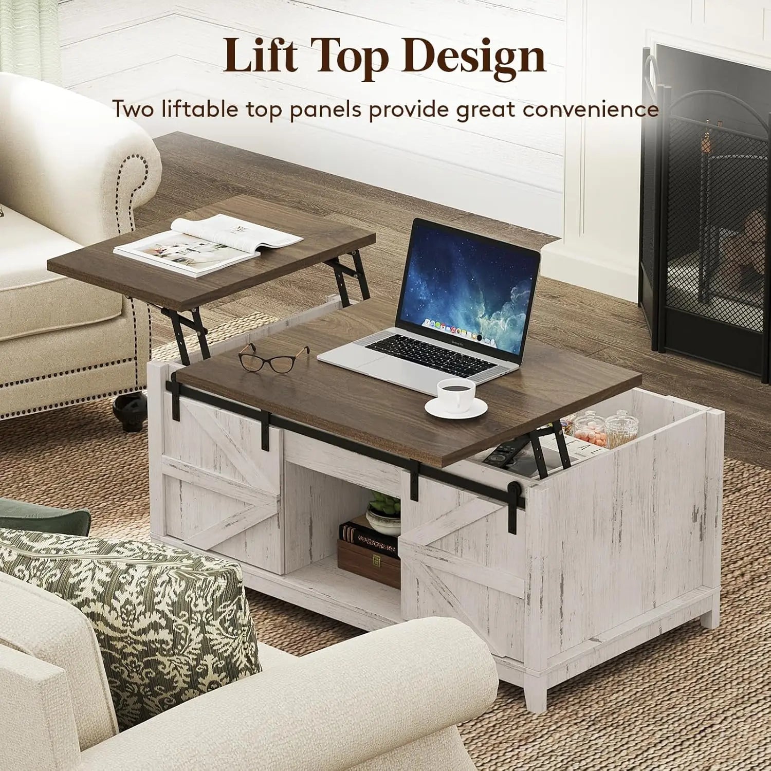 Farmhouse Coffee Table with Sliding Barn Doors and Storage