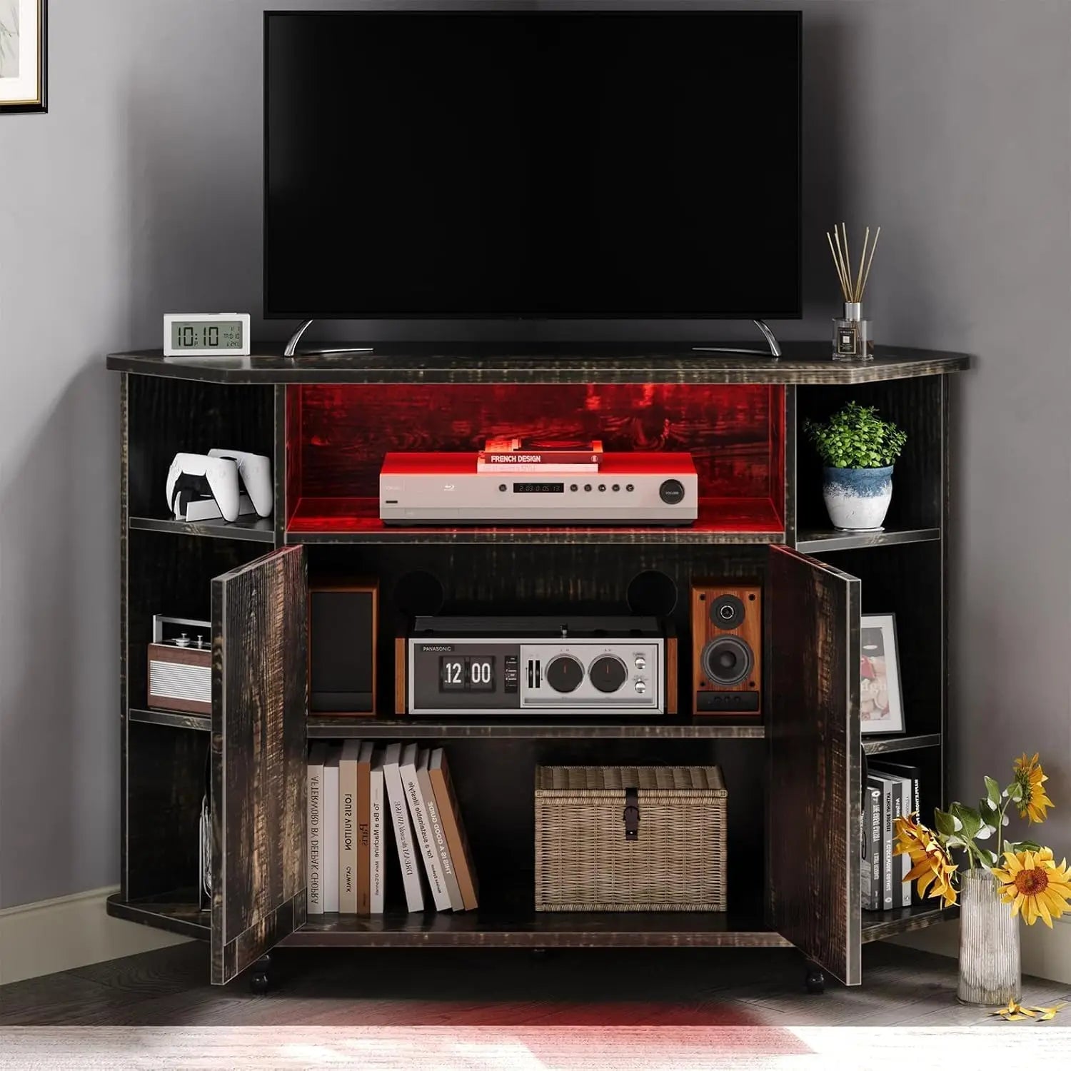 Farmhouse Corner TV Stand with LED Lights, Corner Entertainment Center