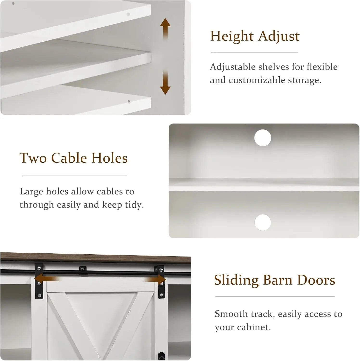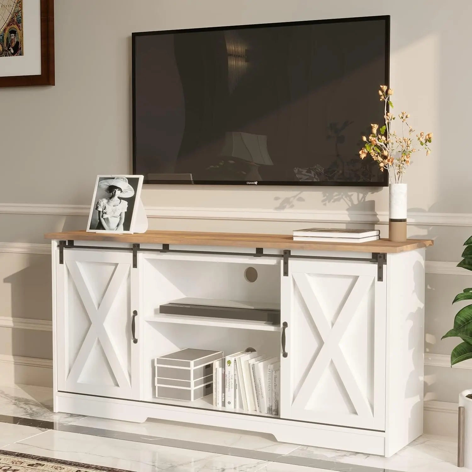 Modern Farmhouse TV Stand With Barn Door Storage Cabinets