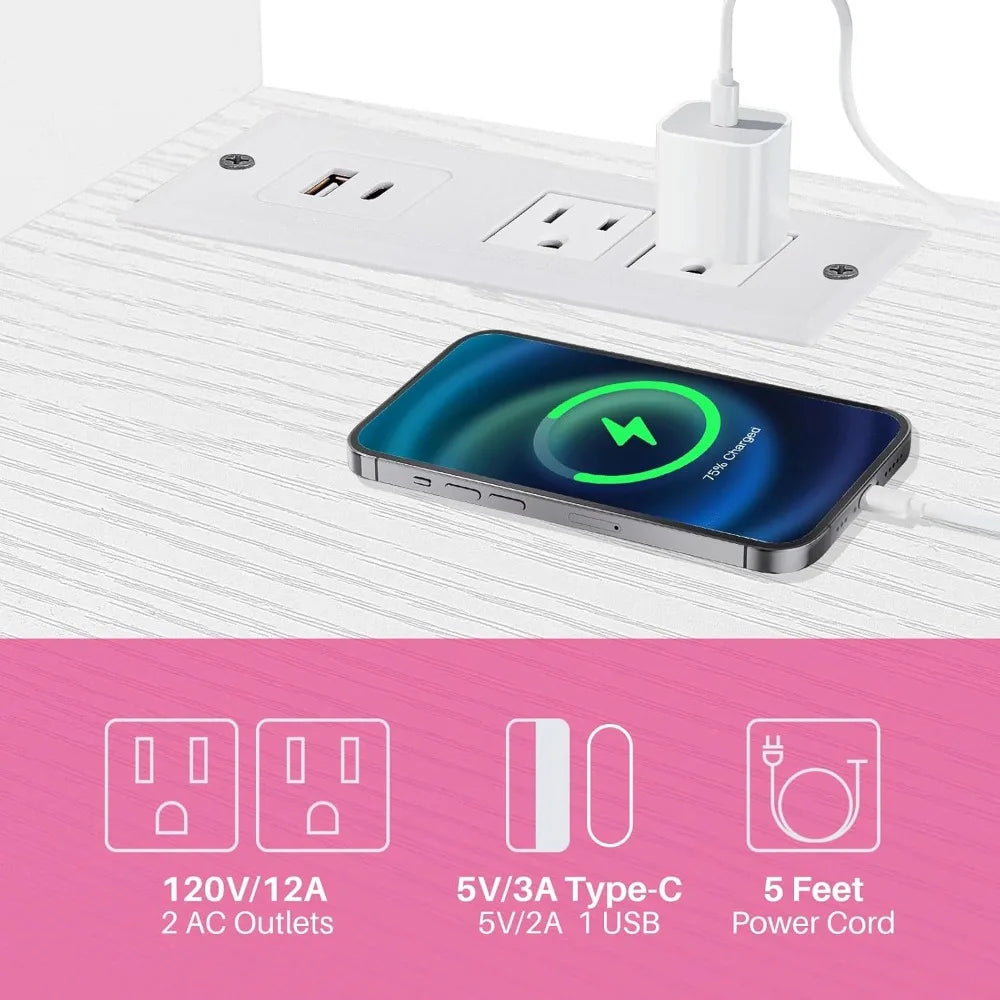 Special Feature: Farmhouse Style TV Stand, Cable Holes, With 2 Outlet Plugs + 2 USB Por